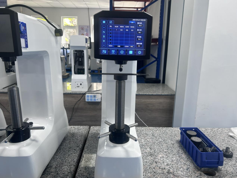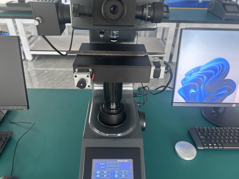 La dureza de la punta del diente debe estar entre 55 HRC y 58 HRC, lo cual es adecuado para la prueba mediante el método de dureza Vickers. Si la posición es adecuada, la pieza de trabajo puede colocarse directamente en la mesa de trabajo del durómetro Vickers para la prueba. Sin embargo, la mayoría de las piezas de trabajo no pueden medirse directamente; en tales casos, es necesario preparar previamente muestras de las mismas. El proceso de preparación de muestras incluye una máquina de corte metalográfica, una rectificadora y pulidora metalográfica y una prensa de montaje metalográfica. A continuación, se colocan las muestras preparadas en la mesa de trabajo del durómetro Vickers para la prueba.